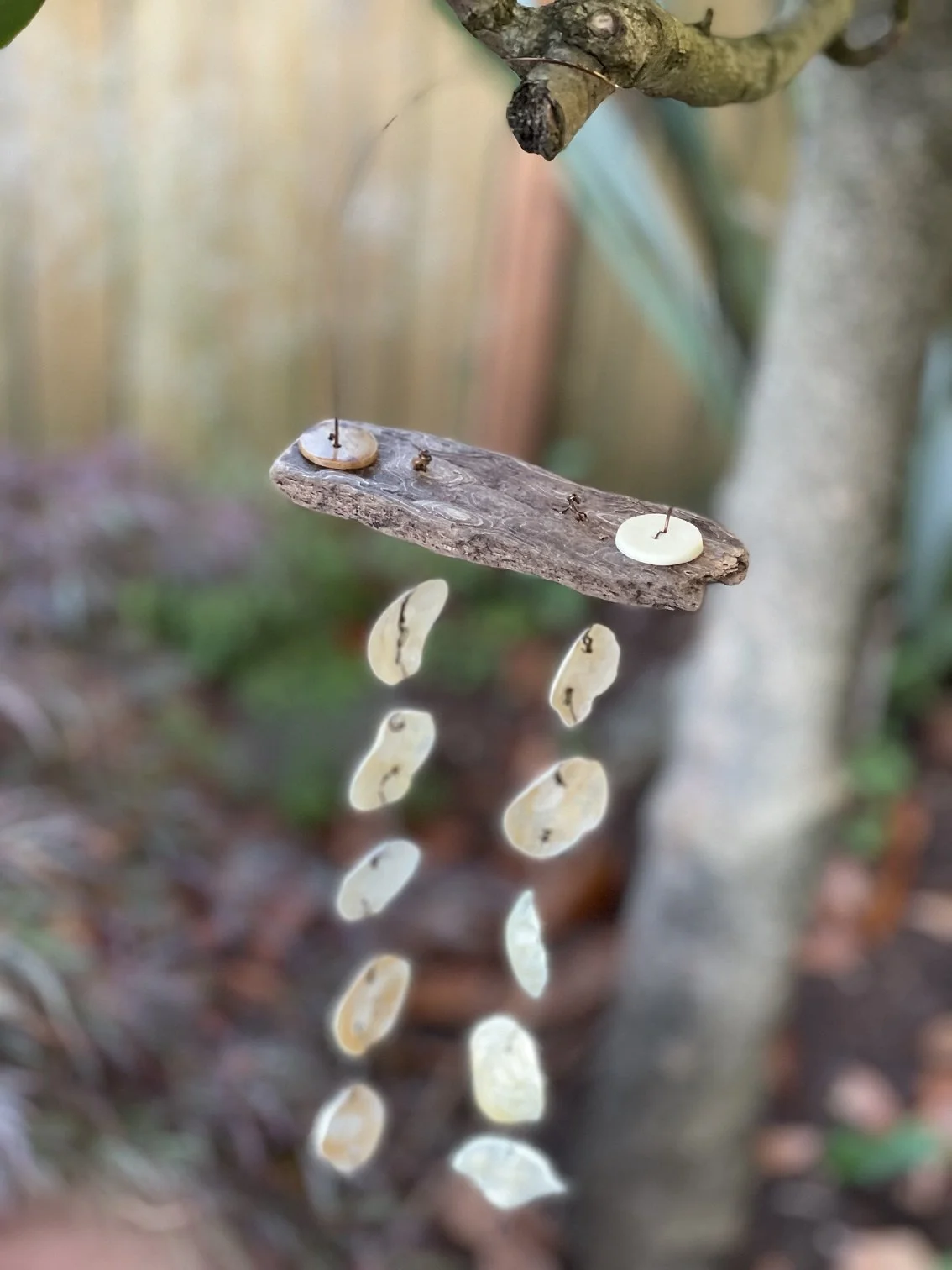 Hanging sea treasures delight.There is something mesmerizing about watching a sun catcher move in the breeze, reflecting light every so often. These hanging art sculptures are made of all found materials, with a few beads added here and there.