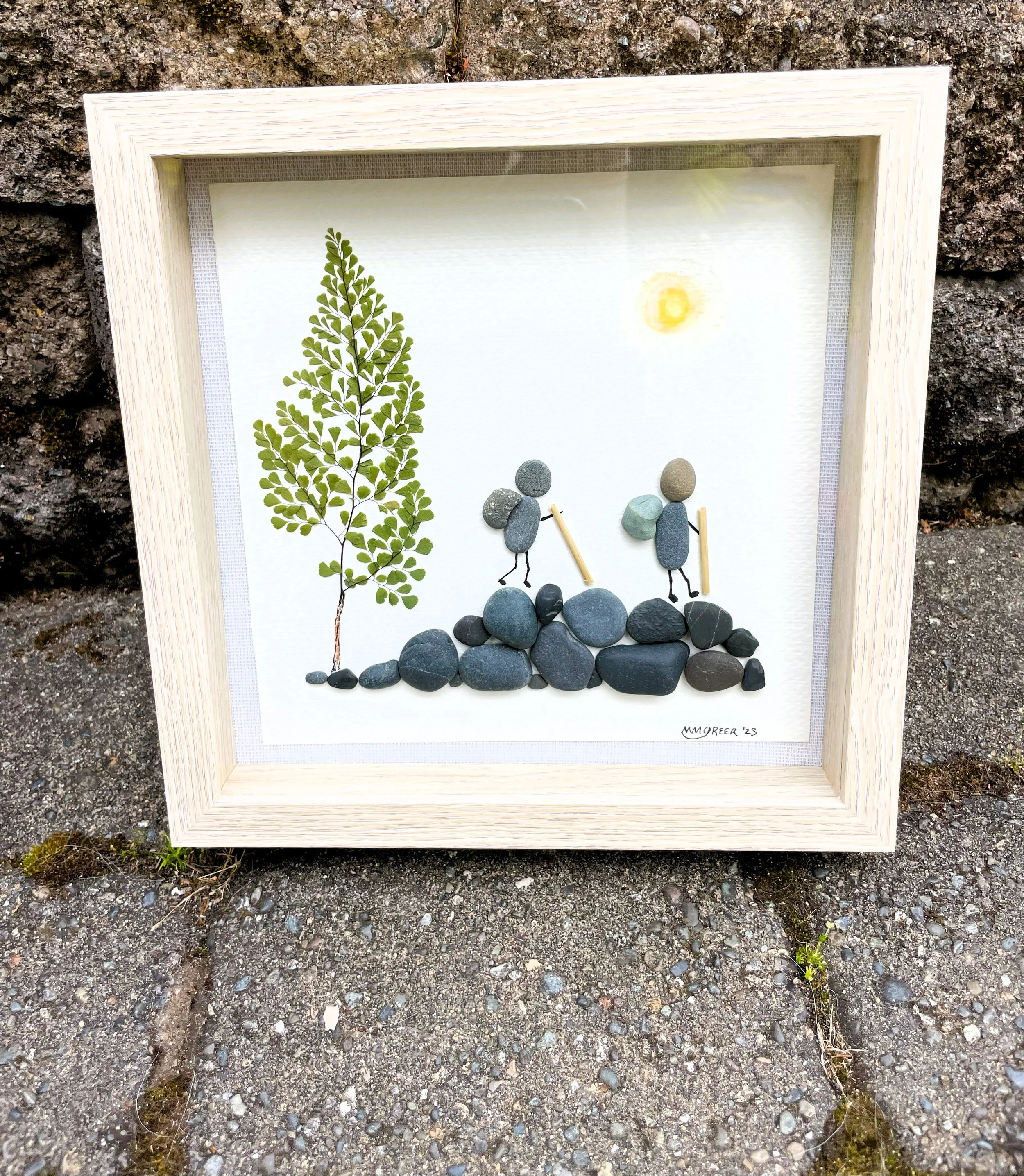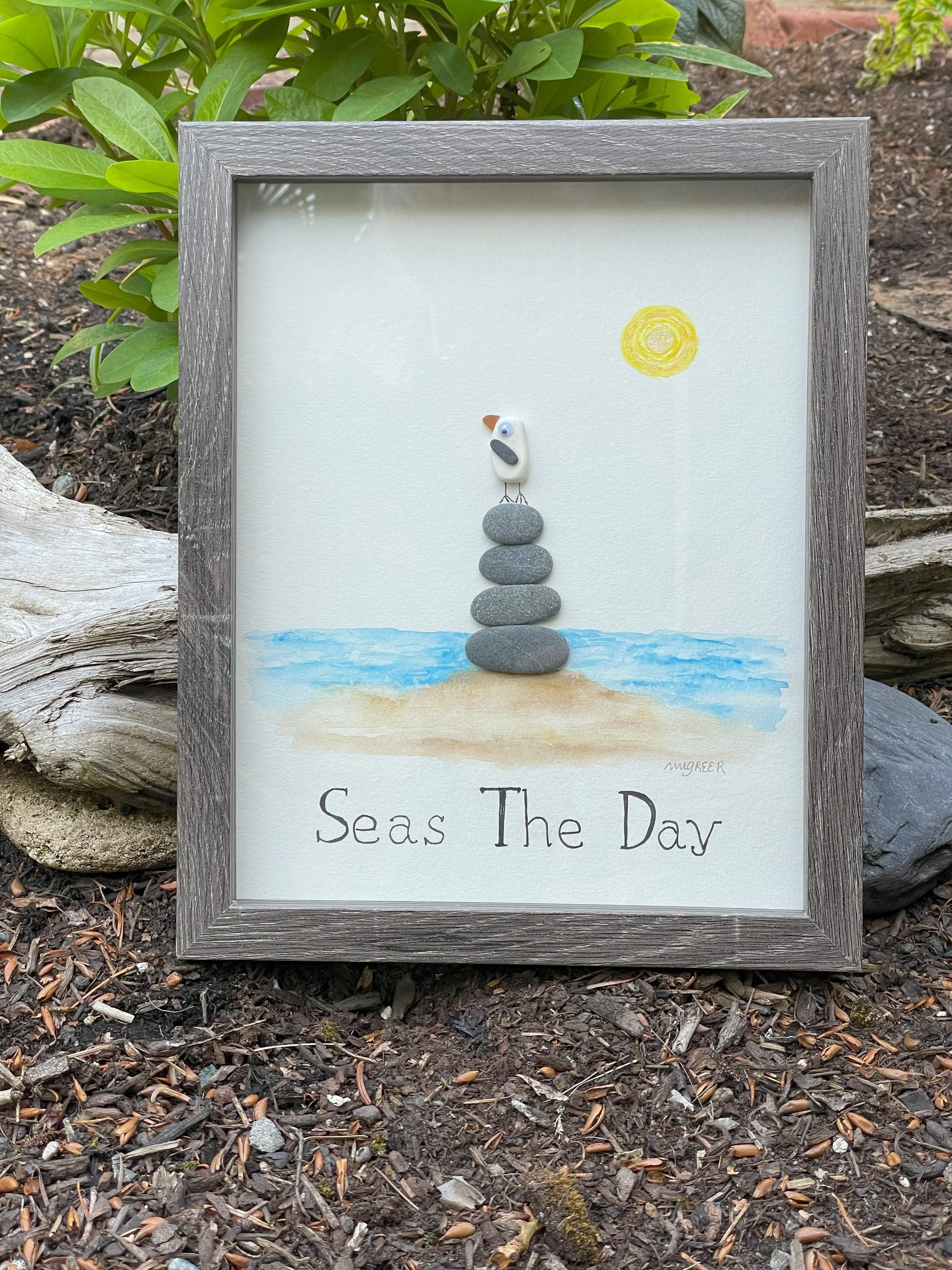 Sea rocks differently.Smooth rocks from the sea come alive in these miniature “scenes” with a message. Some include sea glass, driftwood and watercolor paint. Which one speaks to you?